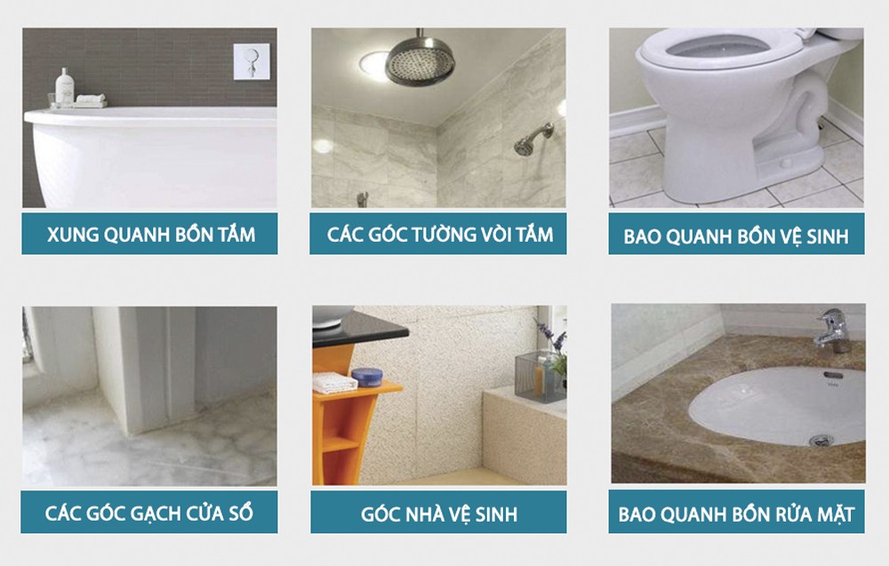 05. Phù hợp cho nhiều khu vực căn nhà như tường sàn nội thất, ngoài trời, sàn nhà vệ sinh, mép dán bồn cầu,....