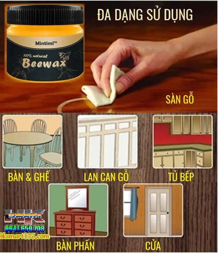 - Sáp đánh bóng Beewax phù hợp cho hầu hết các sản phẩm được sản xuất từ gỗ có trong gia đình bạn.